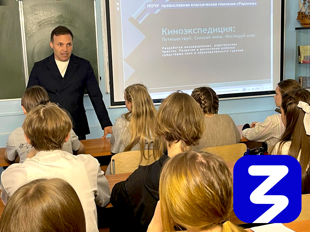 Сегодня 15.09.2025 в гимназии "Радонеж" в рамках реализации проекта «Киноэкспедиция: Путешествуй. Снимай кино. Исследуй мир», подготовленного школьным родительским комитетом с использованием денежной премии Российского Общества «Знание», победителя второго сезона Всероссийского конкурса родительских инициатив прошло первое мероприятие - Мастер-класс от режиссера Алексея Свиридова по съемке, монтажу и созданию сценариев с детьми и родителями.