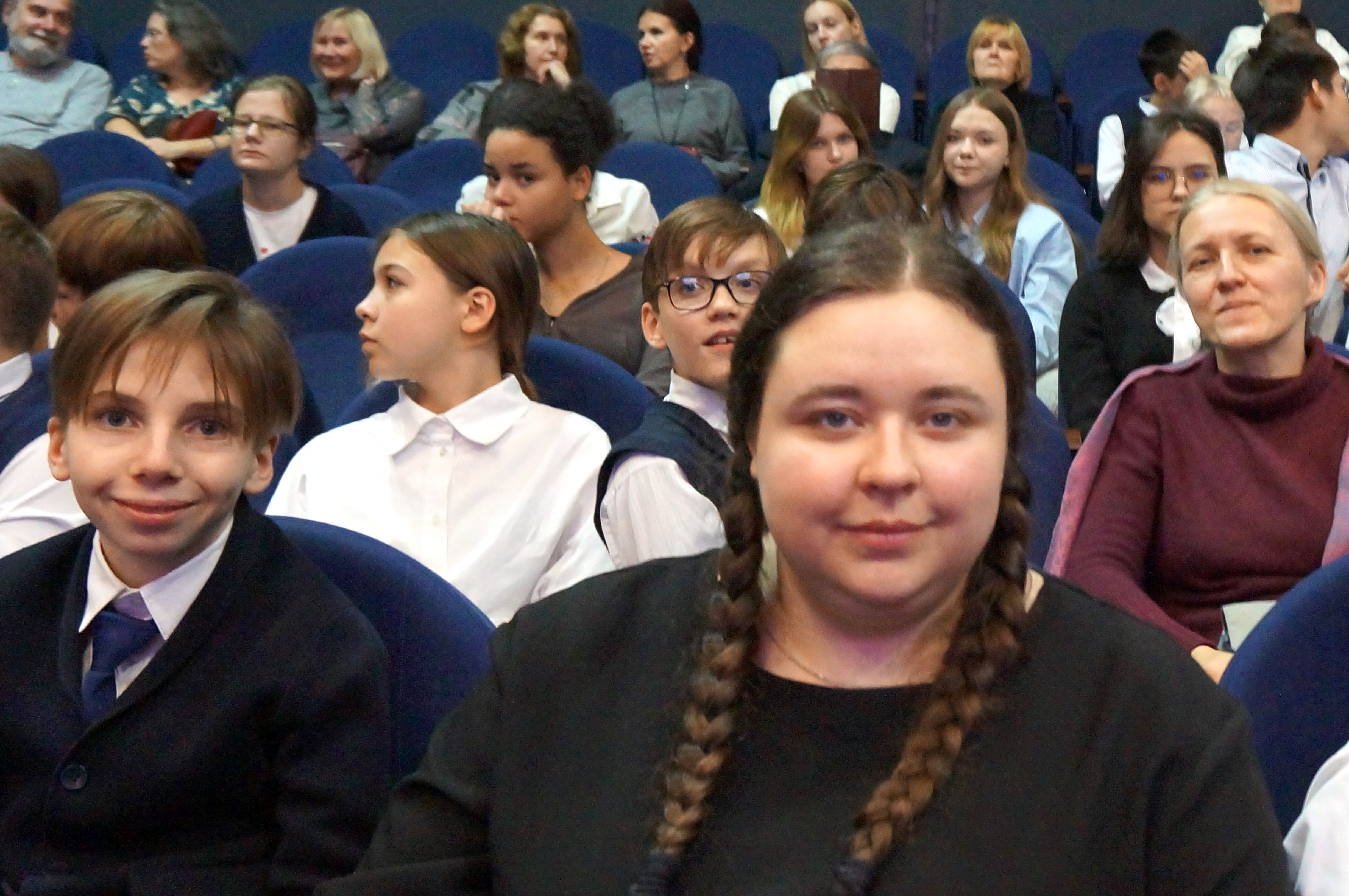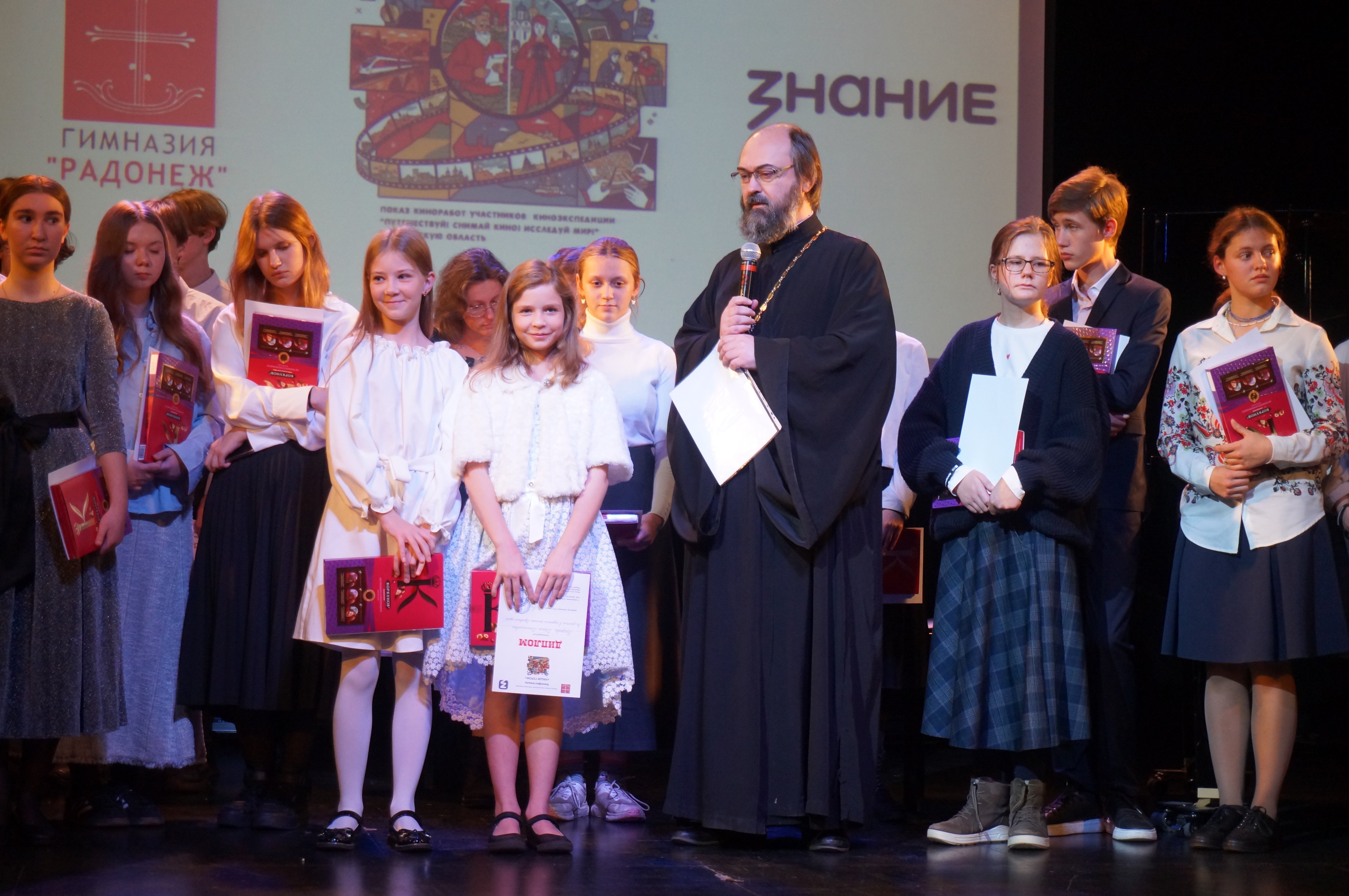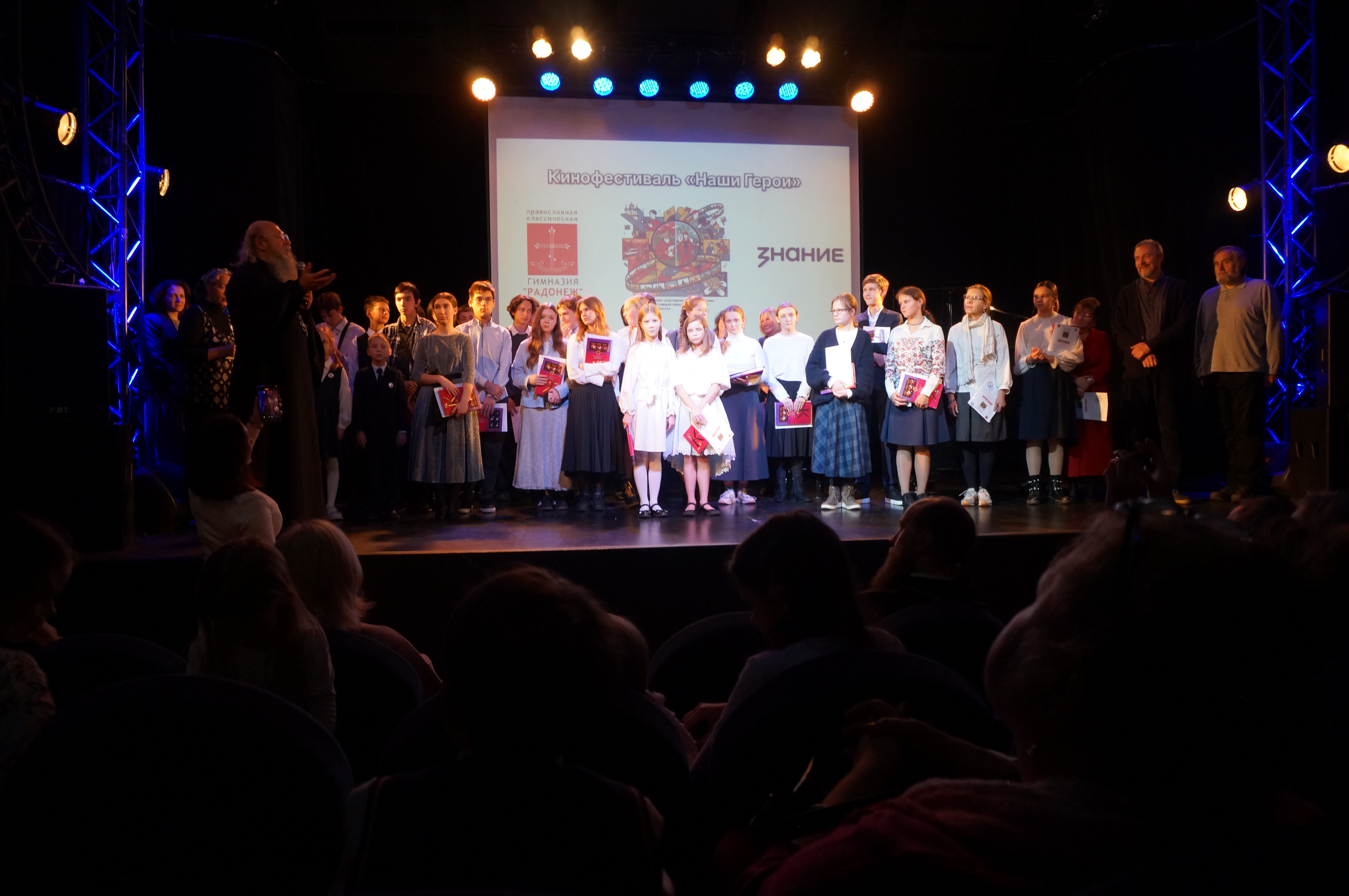 В Малом зале концертного зала "Вдохновение" собрались ученики гимназии, родители, учителя, архимандрит Мелхиседек с братией и другие гости. После просмотра фильмов, снятых во время поездки: "Киноэкспедиция", "С чего начинается Родина?", "Светочи Псковской Земли" и коротких роликов-репортажей, прошла торжественная церемония награждения.