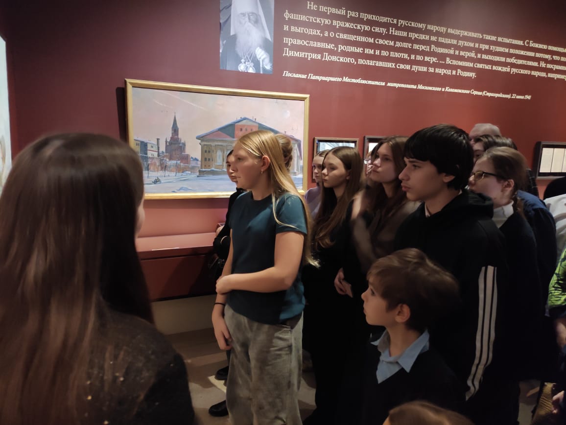 Группе наших гимназистов посчастливилось увидеть своими глазами уникальные архивные документы и музейные артефакты периода Великой Отечественной войны из 50-ти федеральных и ведомственных архивов и музеев России и Беларуси, частных коллекций. Здесь были представлены самые лучшие экспонаты (более 700!), прибывшие из разных городов России, и подобраны они таким образом, чтоб наиболее полно отразить весь масштаб трагедии, имя которой — Великая Отечественная война.