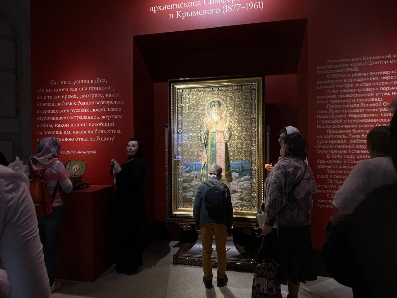 После экскурсии по выставке мы смогли подойти к иконе и мощам святителя Луки.